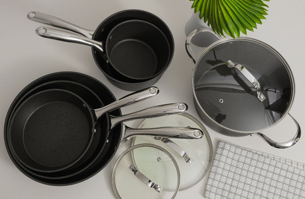 Com estrutura de alumínio as panelas possuem 4mm de espessura que proporciona uma maior durabilidade do produto, como também mais uniformidade térmica, cozinhando os alimentos de maneira uniforme, sem variações de temperatura. Sem contar que elas também mantêm o calor por mais tempo mesmo fora do fogo, possibilitando refeições aquecidas até mesmo à mesa.
