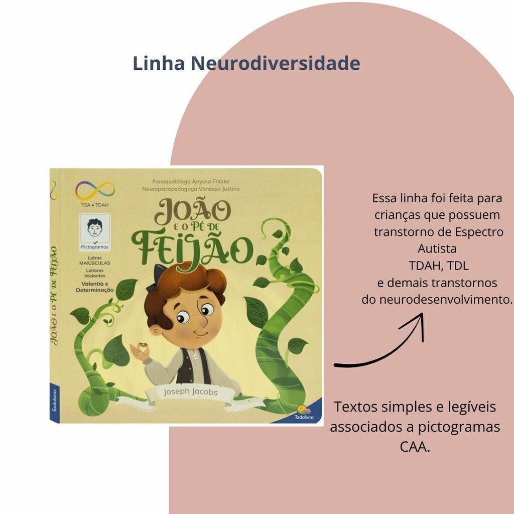 O livro que compõe a linha neurodiversidade são como uma ponte para as crianças que poderão compreender e se expressar melhor por meio de temas oportunos, textos simples e legiveis associados a pictogramas de CAA e ilustrações bem definidas.