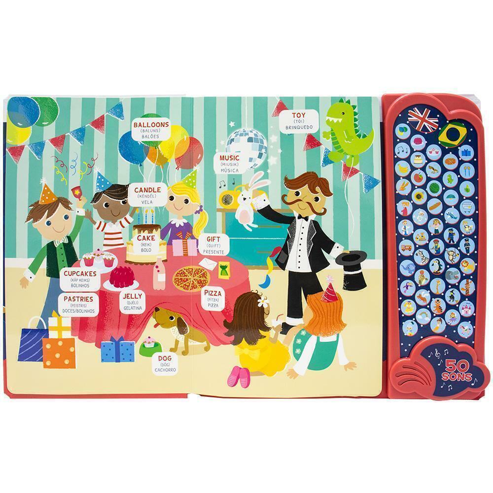 Aqui a criança aprende memorizando e associando as figuras, as palavras, as pronúncias e os sons. Uma ferramenta rica para o aprendizado bilíngue.