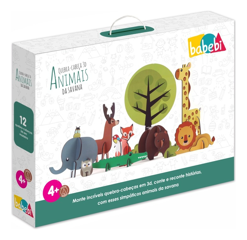 Crie uma divertida aventura com os quebra-cabeças 3D animais da savana. Monte, desmonte, brinque, imagine, conte e reconte histórias ou simplesmente decore seu ambiente!
